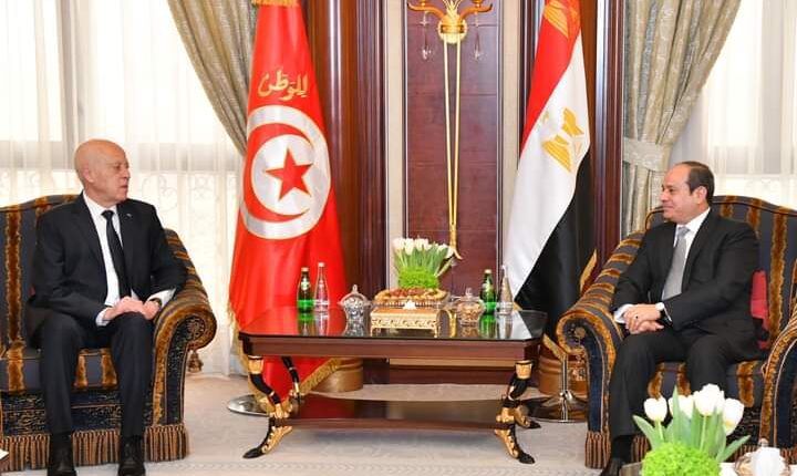 إلتقى الرئيس عبد الفتاح السيسي رئيس جمهورية مصر العربية مع الرئيس التونسي “قيس سعيد”، بالعاصمة الرياض.