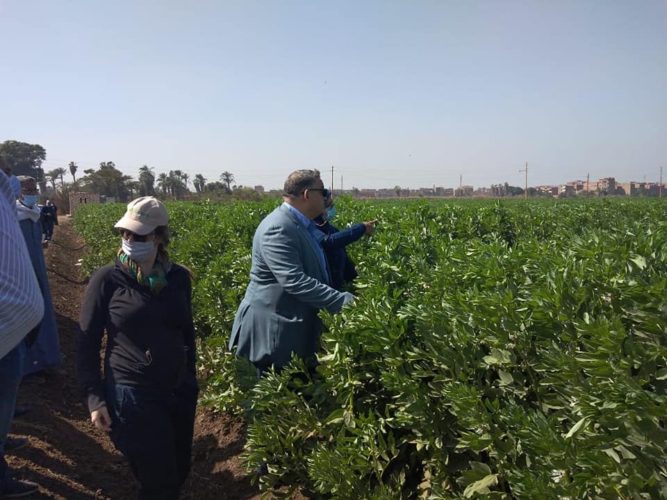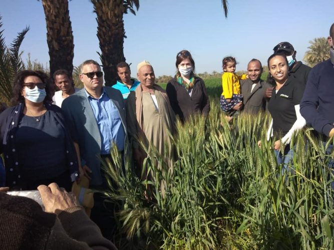 وفي سياق متصل قام د علاء خليل ،، مدير معهد بحوث المحاصيل الحقليه يرافقه وكلاء المعهد للانتاج والبحوث ورئيس قسم المحاصيل البقولية ورئيس قسم القمح والباحث الرئيس لمشروع الابتكار الزراعي لصالح صغار المزارعين ،، باستقبال وفد من ايكاردا لزياره انشطه المشروع بمحطه سدس للبحوث الزراعية بمحافظة بنى سويف وبعض الحقول الارشادية للمشروع ببني سويف وقد ابدي الوفد اعجابه بما شاهدوه بالبرنامج البحثي وحقول المزارعين،،، كما استمعو لاراء المزارعين عن التكنولوجيات المستخدمة كالاصناف الحديثة للقمح والفول البلدي والزراعه علي مصاطب لتوفير المياه .