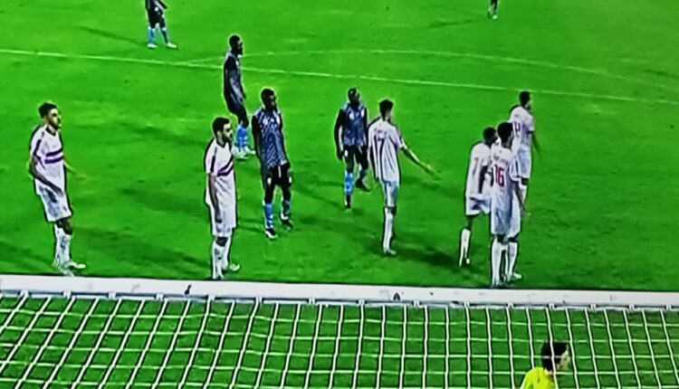 وتعادل لفلامبو الرواندي چاكوايا من كرة سريعة للامام ولعبها تصطدم بالقائم وتسكن شباك الزمالك .