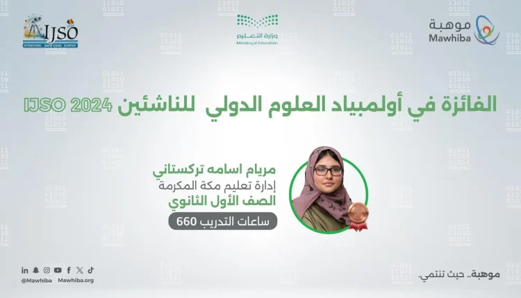 وحققت الميدالية الطالبة مريام أسامة تركستاني، من تعليم مكة المكرمة، ليرتفع رصيد المملكة في هذا الأولمبياد الدولي إلى 28 ميدالية، منها 24 برونزية، و3 فضيات، وذهبية واحدة.