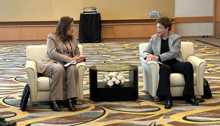 عقدت الدكتورة هالة السعيد، وزيرة التخطيط والتنمية الاقتصادية، اجتماع مع ديلما روسيف، رئيسة بنك التنمية الجديد (NDB) التابع لمنظمة البريكس لبحث سبل تعزيز التعاون المستقبلي، وذلك على هامش فعاليات النسخة السابعة عشر من المنتدى المالى الآسيوى بهونج كونج المنعقدة تحت عنوان “تعاون الأطراف المتعددة من أجل غد مشترك” بمشاركة عدد كبير من القيادات بالقطاع العام والخاص ممثلين عن عدد من الدول.