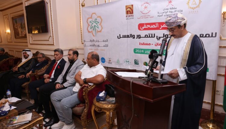 جاء ذلك في كلمة السفير عبد الله الرحبي خلال المؤتمر الصحفي والذي عٌقد بمقر سفارة السلطنة بالقاهرة، لدعم انطلاق المعرض الدولي للتمور والعسل في سلطنة عمان والمقرر له من 20 إلى 26 أكتوبر المقبل.