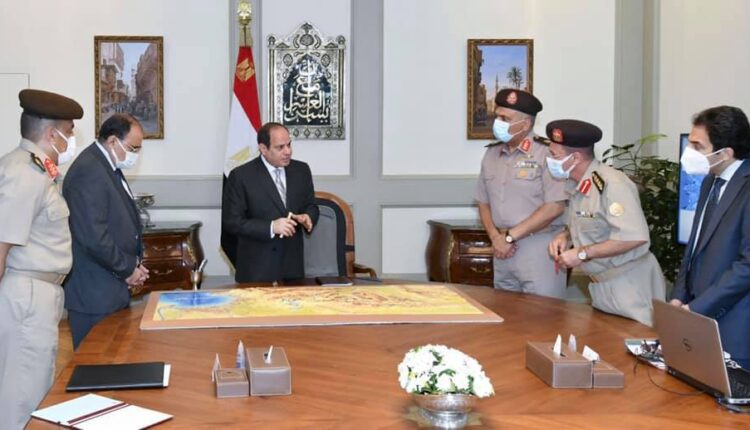 وصرح المتحدث الرسمي باسم رئاسة الجمهورية بأن الاجتماع تناول متابعة الموقف الإنشائي والهندسي لعدد من مشروعات الهيئة الهندسية على مستوى الجمهورية، خاصةً مدينة الجلالة والعاصمة الإدارية الجديدة وما تضمه من أحياء سكنية ومنشآت، وفي مقدمتها التصميمات الهندسية لساحة الشعب، والمدارس الدولية المختلفة، ومدينة مرابط للخيول التي ستمثل جزءاً رئيسياً من مدينة مصر الدولية للألعاب الأوليمبية، فضلاً عن المقر الجديد للبورصة.