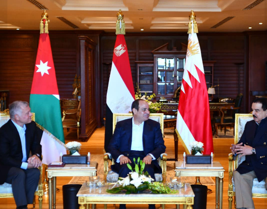 وصرح المتحدث الرسمي باسم رئاسة الجمهورية بأن السيد الرئيس رحب بشقيقيه البحريني والأردني ضيفين عزيزين على مصر، معرباً سيادته عن التقدير للعلاقات الوثيقة والتاريخية التي تجمع البلدان الثلاثة على المستويين الرسمي والشعبي، ومؤكداً تطلع مصر إلى تعزيز التعاون البناء بين مصر والبحرين والأردن، بما يحقق المصالح المشتركة لشعوبهم الأشقاء، ويعزز من جهود العمل العربي المشترك، خاصةً في ظل التحديات الكبيرة الناتجة عن التطورات الإقليمية والدولية المتعددة.