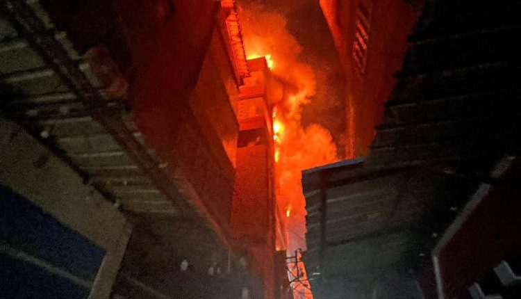 يذكر أن الحريق نشب في مخزن للملابس مكون من أربعة طوابق بمنطقة سوق الخواجات في شارع بورسعيد بالمنصورة.