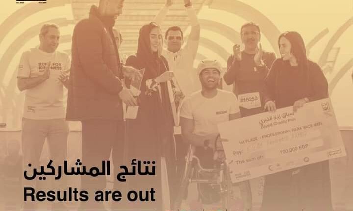 تعلن وزارة الشباب والرياضة عن نتائج الفائزين في ماراثون زايد الخيري ألذى نظمته الوزارة يوم السبت الماضى بالعاصمة الإدارية الجديدة ، وذلك فى نسخته الثامنة بالتعاون مع دولة الامارات العربية المتحدة.