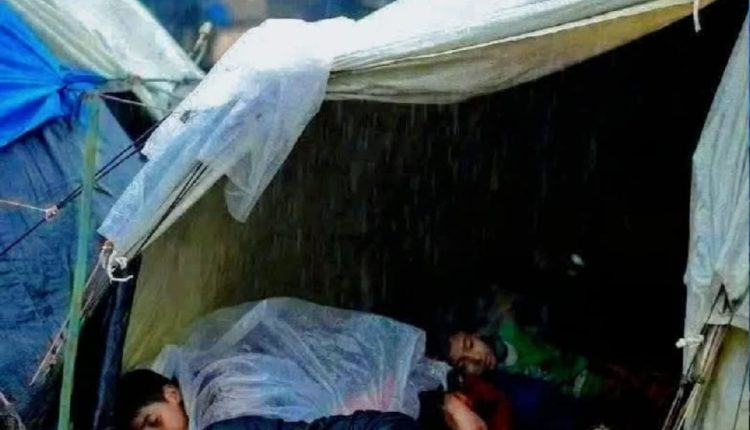 الخيام التي وضعت على عجل لمواجهة موجات النزوح المتلاحقة لا تبدو قادرة على حماية ساكنيها من تقلبات الطقس فهي مصنوعة من أقمشة مهترئة يتسلل الهواء البارد من خلالها من كل اتجاه ، بينما تتسرب مياه الأمطار بسهولة إلى الداخل ما يغرق الأرضيات ويحول الخيام إلى برك طينية تعيق الحركة وتزيد من صعوبة العيش داخلها.
