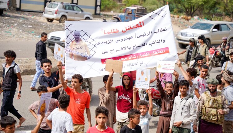 وندد المتظاهرون بالاعتقالات التعسفية خارج نطاق القانون التي تمارسها الدائرة الأمنية للمجلس الانتقالي الجنوبي التي طالت النشطاء في الضالع وعدن بدون اي تهم او مبررات قانونية لاعتقالهم والزج بهم في السجون ولم يتم إحالة ملفاتهم إلى القضاء للبت فيها .