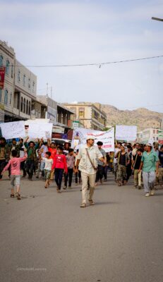 و توافد اهلي منطقة الحود ومن مناطق مديريات الضالع منذ صباح اليوم الخميس إلى الشارع الرئيس بمدينة الضالع رافعين أعلام الجنوب وصور المعتقلين وفي مقدمتهم المعتقل رشاد محمد قائد التير المعتقل في السجن المركزي بالمنصورة منذ أكثر من خمس سنوات دون محاكمة.