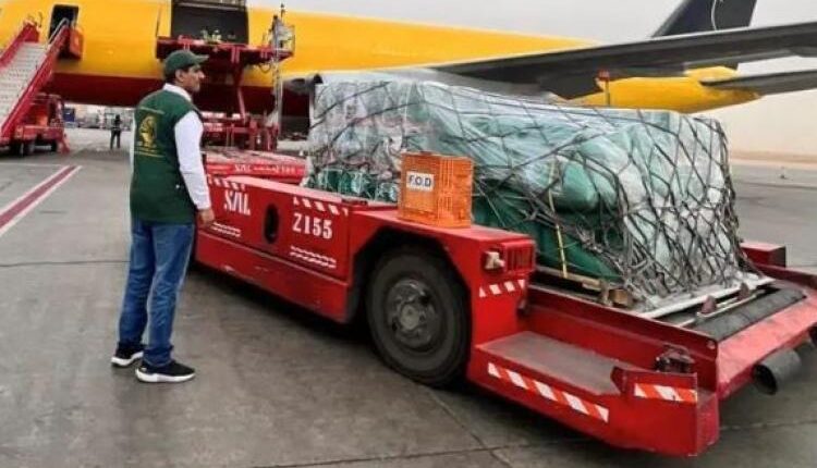 يذكر أن الطائرة تحمل على متنها 35 طنا من مساعدات إغاثية متنوعة شملت مواد غذائية وإيوائية، وذلك ضمن الحملة الشعبية لإغاثة الشعب الفلسطيني الشقيق في قطاع غزة، والتي وجه بها خادم الحرمين الشريفين الملك سلمان بن عبد العزيز آل سعود، وولي العهد السعودي رئيس مجلس الوزراء الأمير محمد بن سلمان بن عبد العزيز .