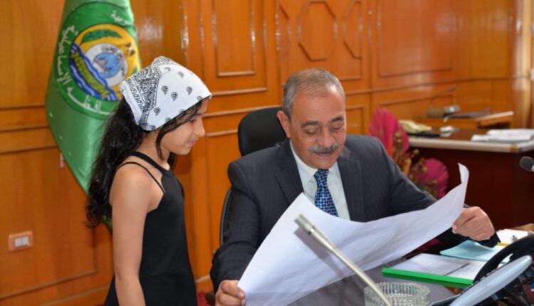 أهدت الطفلة لميس عبد الرحمن أمين، اللواء أركان حرب شريف فهمي بشارة محافظ الإسماعيلية لوحة عن حرب السادس من أكتوبر ١٩٧٣.