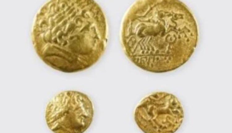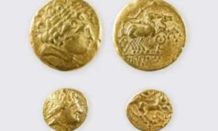 إحدى العملتين هي ستاتر تزن 7.8 جرام، والأخرى ربع ستاتر تزن 1.86 جرام، يُشتق مصطلح “ستاتر” من العملات اليونانية القديمة. فقد كان الكلت في أوروبا القارية، بصفتهم مرتزقة، يتلقون العملات اليونانية كأجور بشكل متزايد في نهاية القرن الرابع قبل الميلاد، وقد شكلت هذه العملات بعد ذلك مصدر إلهام للعملات الكلتية في بداية القرن الثالث قبل الميلاد، عندما بدأت عملية التقليد، كما هو مذكور في البيان.
