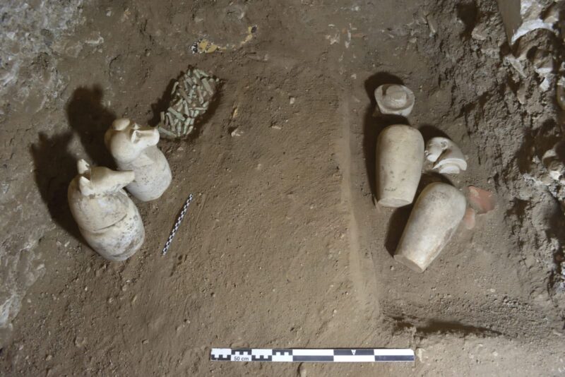 وأسفرت أعمال الحفائر أيضا بالمنطقة الشمالية الشرقية عن وجود عدد كبير من المقابر التي تعود إلى عصر الانتقال الثالث، تحتوي معظمها على حجرات وآبار للدفن بها أواني كانوبية وأدوات جنائزية بحالة جيدة من الحفظ، بالإضافة إلى توابيت موضوعة داخل بعضها البعض، و401 تمثال من الأوشابتي المنحوت من الفخار ومجموعة من العظام المتناثرة.