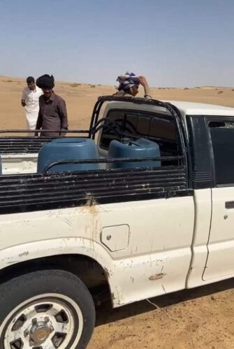 العثور على سيارة المفقودين برحلة صيد الصقور بالصحراء الغربية والأهالي تتتبع آثار أقدامهم