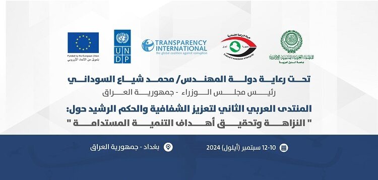تعقد المنظمة العربية للتنمية الإدارية- جامعة الدول العربية، المنتدى العربي الثاني لتعزيز الشفافية والحكم الرشيد حول “النزاهة وتحقيق أهداف التنمية المستدامة”، وذلك خلال الفترة من 10-12ببغداد- العراق، تحت رعاية دولة المهندس محمد شياع السوداني رئيس مجلس الوزراء بجمهورية العراق،و بالتعاون مع هيئة الشفافية الدولية، والاتحاد الأوروبي، وهيئة النزاهة الاتحادية بجمهورية العراق، بمشاركة نخبة من أصحاب السعادة المسؤولين والخبراء من العديد من المنظمات الدولية والإقليمية المعنية بالتنمية، وهيئات مكافحة الفساد والرقابة، أعضاء المجالس النيابية والتشريعية، الاستشاريون والخبراء وأساتذة الجامعات والباحثون المهتمون في مجال مكافحة الفساد، من مختلف الدول العربية.