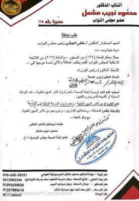 ومؤخرا قدم د. أشرف حاتم، رئيس لجنة الصحة بمجلس النواب، بمشروع القانون، وطالب بتعديل بعض أحكام قانون تنظيم شئون أعضاء المهن الطبية، من العاملين بالجهات التابعة لوزارة الصحة والسكان، من غير المخاطبين بقوانين أو لوائح خاصة، الصادر بالقانون رقم 14 لسنة 2014، والمحول من لجنة مشتركة بين لجان الشئون الصحية، والدستورية والتشريعية، والخطة والموازنة، وذلك لإدراج أخصائيي تكنولوجيا العلوم الصحية التطبيقية، ضمن المخاطبين بأحكام القانون المشار إليه، بحيث يسري هذا القانون عليهم، وكذلك الخريجين من المسميات السابقة التابعة، وهي علوم طبية تطبيقية، علوم صحية تطبيقية، بكالوريوس تقنى علوم صحية.