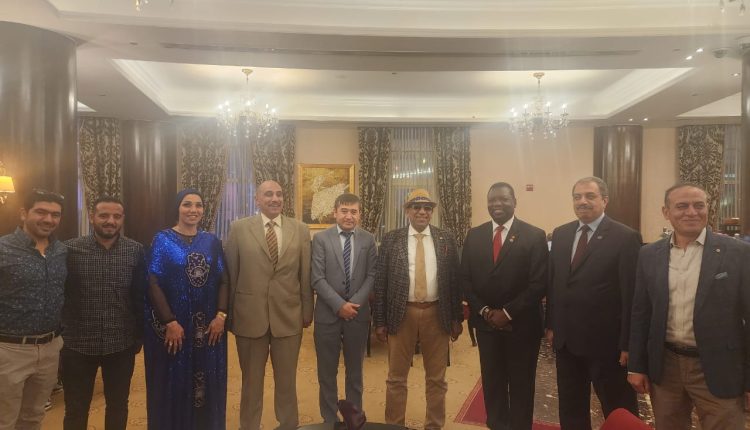 ناقش الدكتور علاء العيسوي المدير التنفيذي للاتحاد الدولي لرجال الأعمال مع السفير الأوغندي الجنرال تشارليز وسعادة و اوتابك أليموف نائب سفير دولة اوزباكستان تبادل الفرص الاستثمارية خاصة مشروعات المجوهرات والذهب الاوزباكستاني