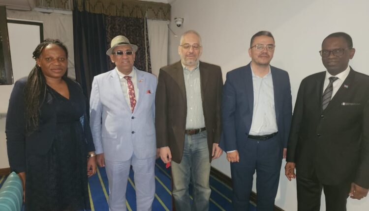 ناقش الاتحاد الدولي لرجال الأعمال العرب والأفارقة بالخارج ومكتبه التنفيذي برئاسة الدكتور علاء العيسوي مع السفير فيليو هيفينداكا سفير دولة نامبيا والمشرف على 6 دول والسيدة مايا سكرتيرة السفير الفرص الاستثمارية المتاحة في دولة نامبيا وكيفية تنمية التعاون الاقتصادي إلى جانب تسهيل إجراءات تنقل رجال الأعمال والجوازات
