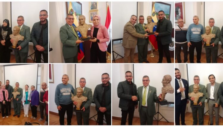 في لافتة فنية مميزة، أهدى الفنان التشكيلي أحمد رضا تمثالاً فنياً يجسد الزعيم الفنزويلي الراحل سيمون بوليفار، إلى سفارة جمهورية فنزويلا البوليفارية بالقاهرة، تكريمًا لدوره التاريخي كقائد للثورة البوليفارية ورمز للتحرر في أمريكا اللاتينية.