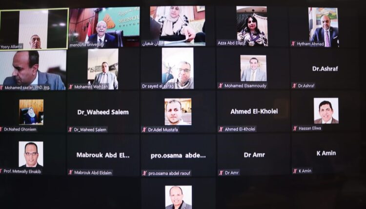 عقد الدكتور أحمد فرج القاصد رئيس جامعة المنوفية إجتماع لجنتي المكتبة المركزية و المكتبات الجامعية الشهري ،بمشاركة أعضاء اللجنة online عبر منصات الإجتماعات الإلكترونية