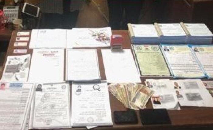 وعقب تقنين الإجراءات أمكن ضبط الأخير حال تواجده بالشقة سكنه ، وعُثر بداخلها على (عدد من المستندات والشهادات والعلامات المائية منسوب صدورها للعديد من الجهات وجميعها مزورة – أكلاشيهات منسوب صدورها لعدة جهات وأشخاص وجميعهم مقلدين – أجهزة كمبيوتر تحوى ملفات لمجموعة من أختام شعار الجمهورية منسوب صدورها لجهات حكومية مختلفة – فلاشة “تحوى كمية من المحررات الرسمية منسوب صدورها لجهات حكومية مختلفة – أجهزة “إسكانر – مكبس – ماكينة تجفيف” – مجموعة من الأوراق البلاستيكية تستخدم فى طباعة وتغليف الكارنيهات المزورة).