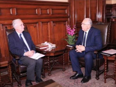 السيد القصير وزير الزراعة واستصلاح الأراضي استقبل دان جوستافسون مستشار المدير العام لمنظمة الأغذية والزراعة للأمم المتحدة (الفاو) بروما وبحث معه المشروعات المشتركة بين الوزارة والمنظمة الدولية وذلك بحضور د. عبد الحكيم الواعر مساعد المدير العام للمنظمة والممثل الإقليمي لمنطقة الشرق الأدنى وشمال إفريقيا.