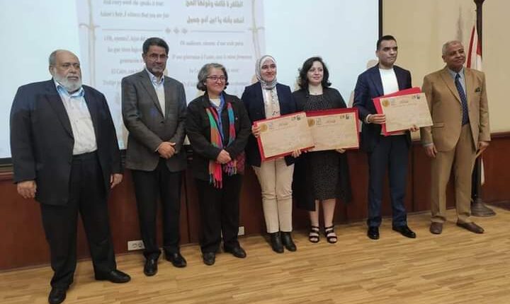 فاز بجوائز المسابقة ندى حجازي المدرس بقسم اللغة الانجليزية بكلية الالسن جامعة عين شمس ، الدكتورة دعاء صلاح محمد مدرس بقسم اللغة الاسبانية وآدابها بكلية الدراسات الانسانية بجامعة الأزهر ، الأستاذة يمينة ليلى موساوي حاصلة على الدكتوراه في علم اللغة الحديث-الجزائر ، الأستاذ عمر عبد الوهاب سلامة مدرس مساعد بقسم اللغات السامية بكلية الألسن بجامعة عين شمس ”.
