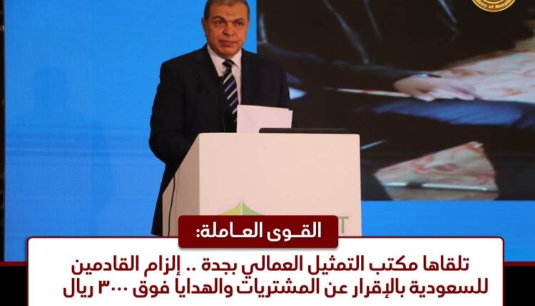 وأوضح هيثم سعد الدين المتحدث الرسمي والمستشار الإعلامي لـ وزارة القوى العاملة، أن التقرير الذي تلقاه الوزير من الملحق العمالي وليد عبد الرزاق أحمد رئيس المكتب العمالي بجدة، لفت فيه إلي أن هيئة الزكاة والضريبة والجمارك دعت المسافرين القادمين للمملكة إلى ضرورة الإقرار عن أي مشتريات شخصية أو هدايا تزيد قيمتها عن 3000 ريال سعودي أو ما يعادلها من عملات أجنبیة، ودفع الرسوم الجمركية والضرائب المستحقة، وذلك تطبیقًا للضوابط والشروط الخاصة بنظام (قانون) الجمارك الموحد لدول مجلس التعاون لدول الخليج العربية.
