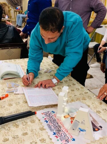 راضي حجازي نائب مدير مستشفى بسيون المركزي ، واللواء ناصر عطيه والأسرة لعقد قران على ناصر عطيه ضابط شرطه ، على الآنسة نجلاء راضي حجازي بكالوريوس تجاره E .