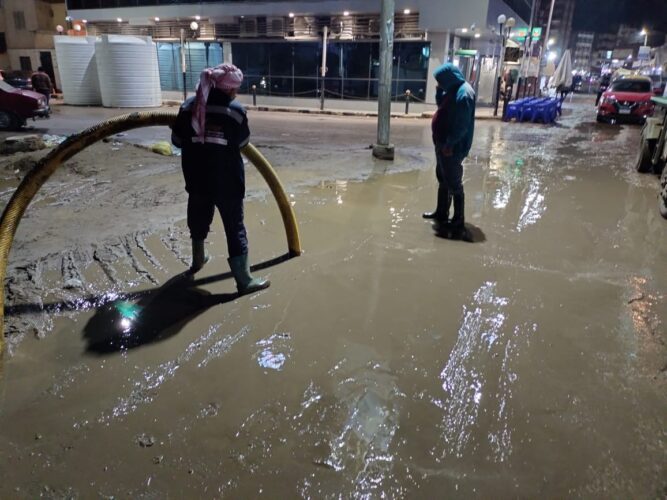 تابع اللواء عادل برغش رئيس مركز ومدينة بسيون أعمال إزالة وشفط تراكمات مياه الأمطار بنطاق مدينة بسيون و بالتنسيق مع شركة المياه والصرف الصحي والأجهزة المعاونة.