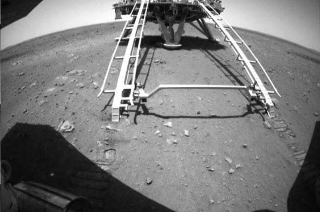الصورة المرفقة: مركبة الهبوط بكاميرا المسبار المتجول (زورونغ) من على سطح المريخ بتاريخ 21 مايو 2021.