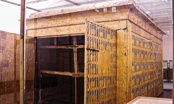 وأوضح الدكتور الطيب عباس مساعد وزير السياحة والآثار للشئون الأثرية بالمتحف المصري الكبير، أن هذه المقصورة هي الأكبر من المجموعة الكاملة للملك توت عنخ أمون وهي مصنوعة من الخشب المذهب، وقد تم العثور عليها بالإضافة إلي ثلاث مقاصير آخري من ضمن مقتنيات الملك بمقبرته بالبر الغربي بالأقصر والتي تم الكشف عنها في نوفمبر 1922، ثم تم نقلها مع باقي القطع إلى المتحف المصري بالتحرير وعرضها هناك.