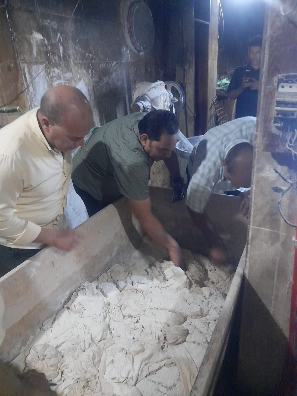 حيث تم ضبط مخبز لقيامه بتجميع كمية من الدقيق البلدي المدعم قدرها ٧ سبعة شكاير دقيق بلدي مدعم بداخل المخبز للبيع بالسوق السوداء بغرض التربح منها ،