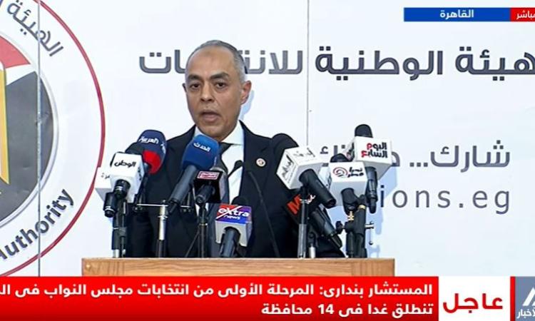 وأشار المستشار أحمد بندارى مدير الجهاز التنفيذي للهيئة الوطنية للانتخابات إن المرحلة الأولى من انتخابات مجلس النواب في الداخل تنعقد غدا في 14 محافظة.