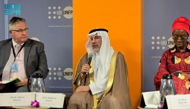 وأردف الدكتور الربيعة : كذلك التركيز على المضاعفات التي تحدث بعد الولادة نتيجة لعدم توافر خدمات الصحة الإنجابية المناسبة في المجتمعات الهشة ومحاولة معالجتها، بما في ذلك رعاية نزيف ما بعد الولادة، والرعاية أثناء فترة النفاس (بما في ذلك العناية بالثدي)، وعلاج الإنتان، وإدارة الرعاية الصحية لعلاج سلس البول، و زيادة قدرات العاملين في مجال الصحة والمؤسسات الصحية من خلال برامج التدريب وأطر مراقبة الجودة وأنظمة المعلومات وأنظمة مراقبة وفيات الأمهات والاستجابة لها، والتركيز على أحد أبرز المضاعفات الصحية الناتجة من تدهور خدمات الصحة الإنجابية في المجتمعات الهشة ومحاولة معالجتها، وهو مرض الناسور، حيث نفذ المركز العديد من الحملات الجراحية لعلاج هؤلاء النساء بالشراكة مع منظمات دولية مثل صندوق الأمم المتحدة للسكان. وأورد معاليه وضع النساء في قطاع غزة حيث تواجه النساء هناك العديد من التحديات التي تفاقمت بسبب العدوان المستمر وحصار المساعدات الإنسانية؛ ذلك أن تقييد الحركة، والوصول المحدود إلى الرعاية الصحية، والهجمات على البنية التحتية والقصف المتكرر للمستشفيات والمرافق الطبية يحد بشدة من الوصول إلى الرعاية الصحية الأساسية، وخاصة للنساء واحتياجاتهن المتخصصة.
