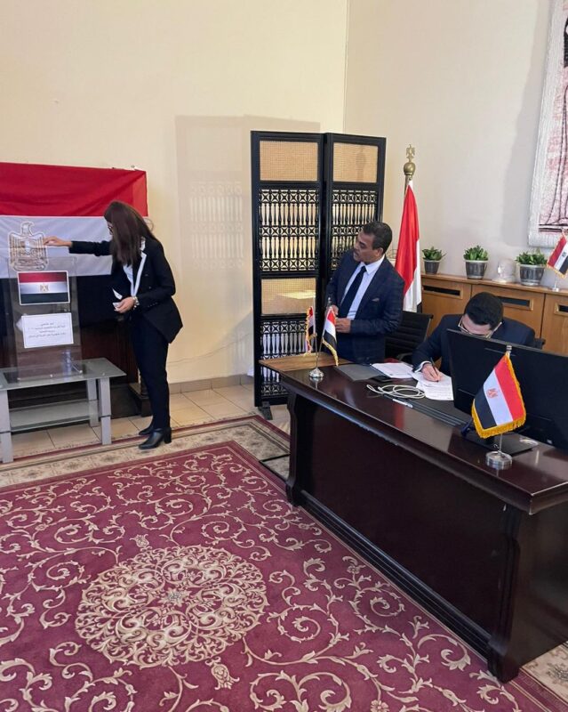 وتُجرى العملية الانتخابية خارج مصر في عدد 137 سفارة وقنصلية في 121 دولة حول العالم، والتي صدر قرار مجلس إدارة الهيئة الوطنية للانتخابات رقم (27) لسنة 2023 بتحديد مقراتها وعناوينها.