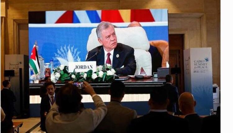 توجه العاهل الأردني الملك عبدالله الثاني بالشكر لجمهورية مصر العربية على عقد القمة في هذا الوقت العصيب للسعي لإنهاء الكارثة في قطاع غزة.