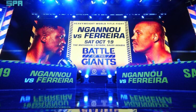 تستضيف المملكة، يوم السبت 19 أكتوبر 2024 الحدث الأبرز في الفنون القتالية المختلطة نزال (معركة العمالقة)، والذي يجمع حامل اللقب البرازيلي رينان فيريرا ومنافسه الكاميروني فرانسيس نغانو، على لقب بطولة (PFL) للوزن الثقيل، وذلك في قاعة ميادين بالعاصمة الرياض، بإشراف وزارة الرياضة وتنظيم الاتحاد السعودي للفنون القتالية المختلطة بالتعاون مع الرابطة العالمية للفنون القتالية (PFL).