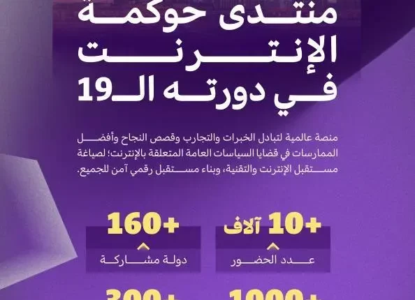 تستعد الرياض لاستضافة المنتدى العالمي لحوكمة الإنترنت (IGF) في دورته الـ (19) بمركز الملك عبدالعزيز الدولي للمؤتمرات، خلال الفترة من 15 إلى 19 ديسمبر 2024، الذي يجتمع فيه خبراء العالم بأكثر من 10,000 مشارك من 160 دولة، وبما يزيد عن 1,000 متحدث دولي، وأكثر من 300 جلسة وورشة عمل، لمناقشة وصياغة التوجهات والسياسات الدولية حول مستجدات حوكمة الإنترنت، والتوافق عليها بشكل تشاركي بين الحكومات والقطاع الخاص والقطاع غير الربحي.