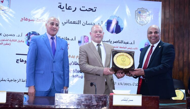 شهد الدكتور حسان النعماني رئيس جامعه سوهاج ،فعاليات المؤتمر الاول للابحاث الطلابيه بكليه العلوم وذلك بحضور الدكتور حازم المشنب عميد الكليه ،والدكتور عبد الناصر ياسين والدكتور خالد عمران نواب رئيس الجامعه ، والدكتور حسين عبد الحافظ وكيل الكليه ، واللواء طارق حافظ مدير الامن الجامعي ، وعمداء الكليات ، والدكتور جرس خلف نائب رئيس الجامعه لشؤون خدمه المجتمع وتنميه البيئه الاسبق ، والدكتور احمد فكري عميد الكليه الاسبق ، ووكلاء الكليه ورؤساء الاقسام ، ولفيف من اعضاء هيئه التدريس وطلاب الكليه ، وذلك بمقر القاعه الزجاجيه بالحرم الجامعي القديم .