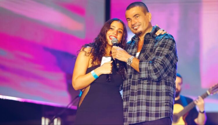 وفى لحظة خاصة من حفله الغنائي في أبوظبي فاجأ النجم عمرو دياب الجمهور بدعوته ابنته جنا إلى المسرح للاحتفال معها.