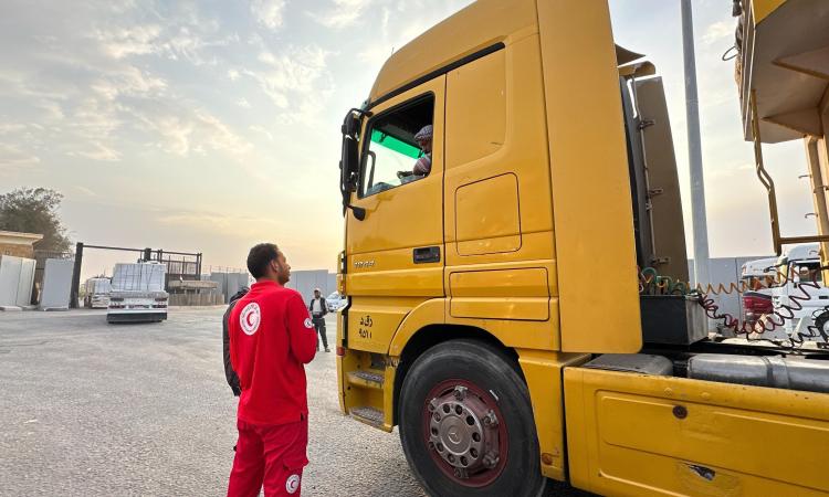 الهلال الأحمر: قافلة “زاد العزة” الـ65 تحمل نحو 8 آلاف طن مساعدات للفلسطينيين