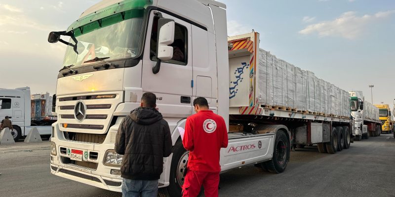 الهلال الأحمر: قافلة “زاد العزة” الـ65 تحمل نحو 8 آلاف طن مساعدات للفلسطينيين