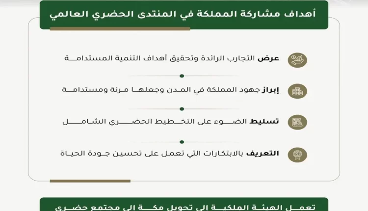 شاركت الهيئة الملكية لمدينة مكة المكرمة والمشاعر المقدسة ضمن الجناح السعودي بالمنتدى الحضري العالمي بنسخته الثانية عشر في جمهورية مصر العربية، بهدف إبراز الجهود في تنمية القطاع الحضري في العاصمة المقدسة حيث تعمل الهيئة الملكية إلى تحويل مكة لمجتمع حضري شامل ومستدام من خلال تطوير شبكات النقل المستدام وتحسين البنية التحتية ورفع جودة الخدمات.
