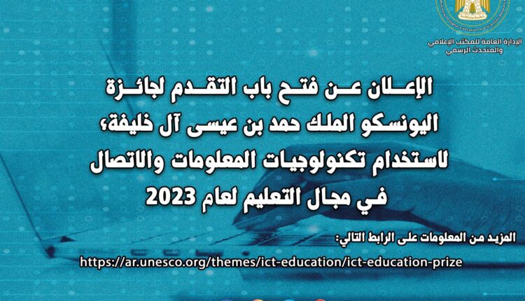 “اليونسكو تُعلن عن فتح باب التقدم لجائزة اليونسكو – الملك حمد بن عيسى آل خليفة لاستخدام تكنولوجيات المعلومات والاتصال في مجال التعليم” لعام 2023