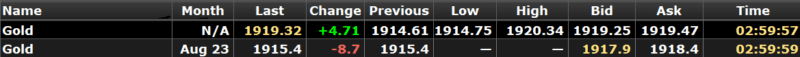 وزاد هامشيًا سعر الذهب الفوري، بنحو 4.71 دولار، ليسجل عند 1919.32 دولارًا للأوقية، وتراجعت العقود الأمريكية الآجلة للذهب (أغسطس 2023)، بنحو 0.45%، إلى 1915.4 دولار.