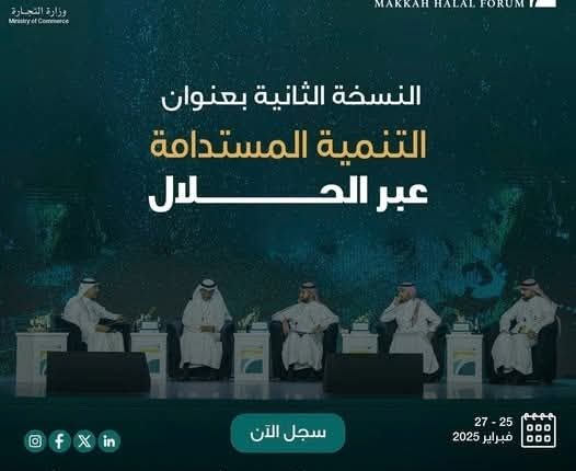 تنطلق بالمملكة العربية السعودية النسخة الثانية من منتدى مكة للحلال ” بمركز غرفة مكة المكرمة للفعاليات والمعارض، خلال الفترة من 25 حتى 27 فبراير المقبل تحت عنوان “التنمية المستدامة عبر الحلال بمشاركة نخبة من خبراء ورواد الحلال وصناع القرار وممثلين رفيعي المستوى من مُختلف أنحاء العالم، ، كمنصة عالمية واعدة لتعزيز الاستدامة والنمو في قطاعات الحلال عالميًا.