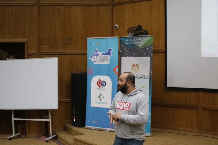 وتحدث في اللقاء الدكتور ماجد غنيمة مستشار المدير التنفيذي لصندوق رعاية المبتكرين والنوابغ وزارة التعليم العالي والبحث العلمي ، وشيماء الشيخ مسئول كريتيفا المنوفية ، و أيمن النحاس مستشار أعمال، وأحمد بسطاوي مدير عام ، ومحمد عادل مدرب التعليم من أجل التوظيف، و يوسف العقاري صاحب المدونة الصوتية خمسة بيزنس .