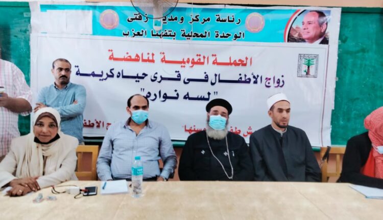 برعاية الدكتور طارق رحمي محافظ الغربية ، انطلقت فعاليات الحملة القومية ” لسة نوارة” لمجابهة زواج الأطفال تحت شعار ” حقها تعيش سنها”، والتي ينظمها المجلس القومي للطفولة والأمومة ووحدة حماية الطفل بالمحافظة بالتعاون مع (مؤسسة حياة كريمة ، التربية والتعليم، الصحة، قطاع تنظيم الأسرة ، التضامن الاجتماعي ، الأوقاف ، الكنيسة ، وحدة السكان ، محو الأمية وجمعية رسالة) بقرية تفهنا العزب مركز زفتى.