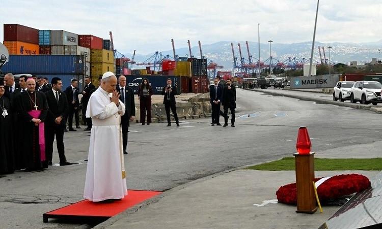 وأدى البابا صلاة صامتة خلال زيارته الى موقع انفجار المرفأ ، والتقى بعدد من عائلات ضحايا الانفجار.